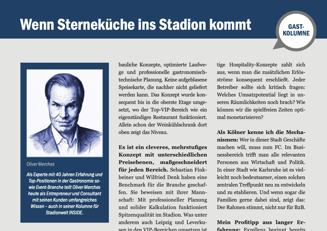 Die internationalen Marktführer der Catering-Branche orientieren sich mittlerweile in den Stadien auch in Richtung der Spitzengastronmie – das ist sehr vielversprechend.